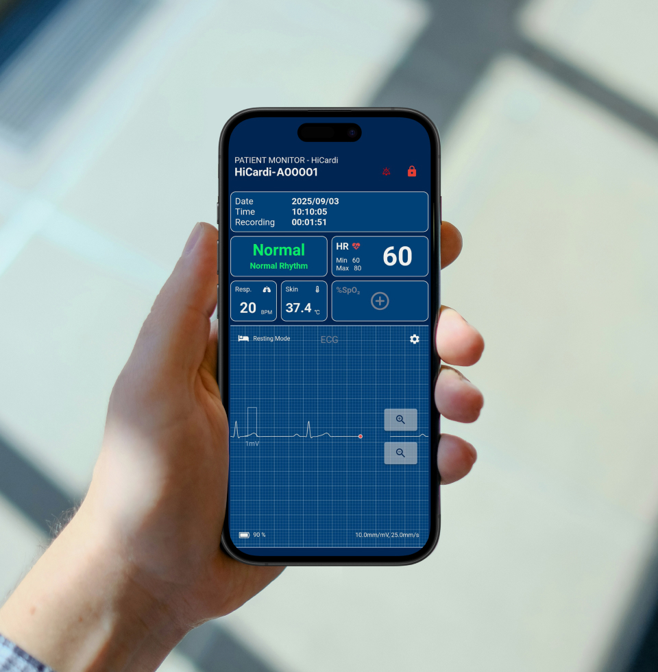 작고 가벼운 패치를 환자의 가슴에 부착해 심장의 전기적 신호를 실시간으로 포착합니다.