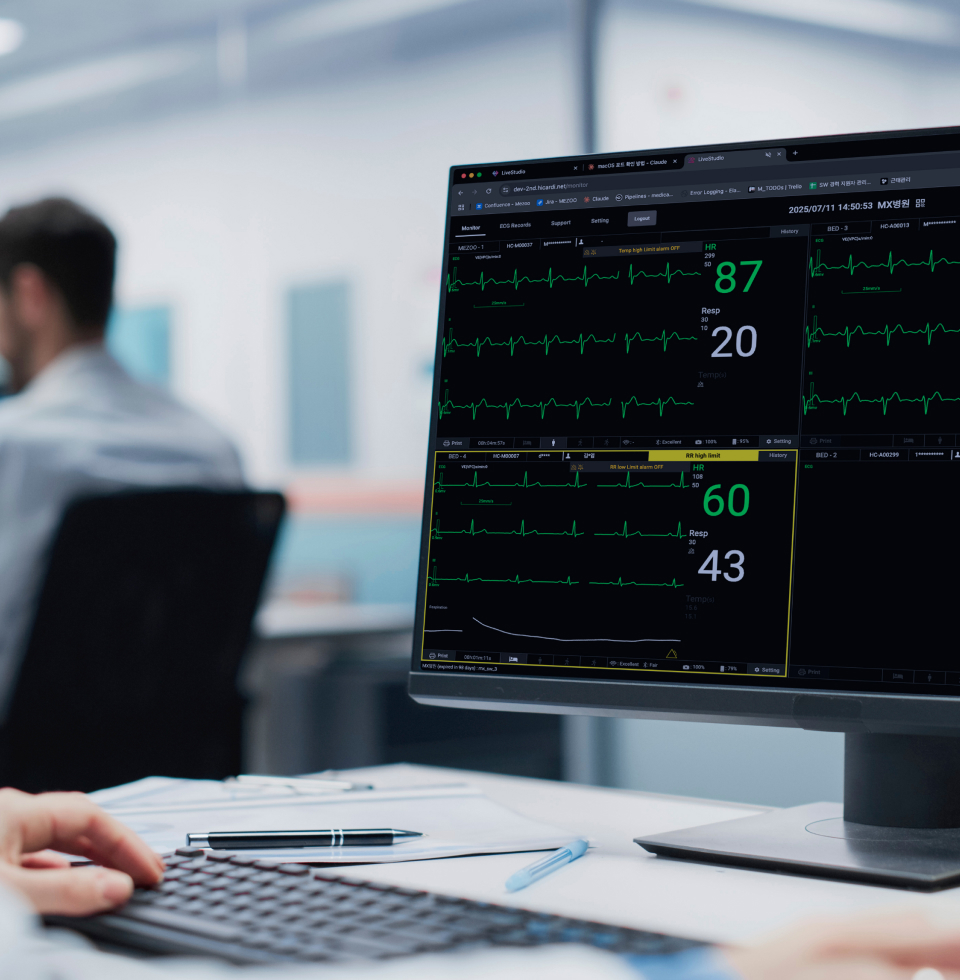 의료진은 환자의 상태를 언제든 모니터링하며, 이상 신호를 빠르게 파악할 수 있습니다.